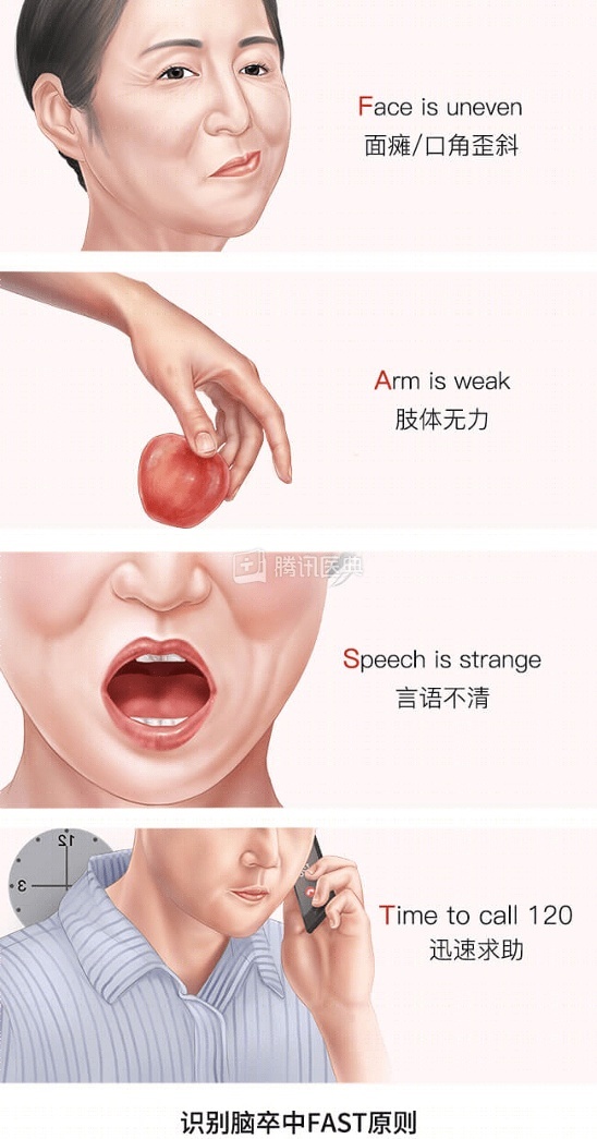 无论是“FAST”,还是“120理论”都是对中风发生时的快速判断的要领,提醒及时发现症状,尽早就医。